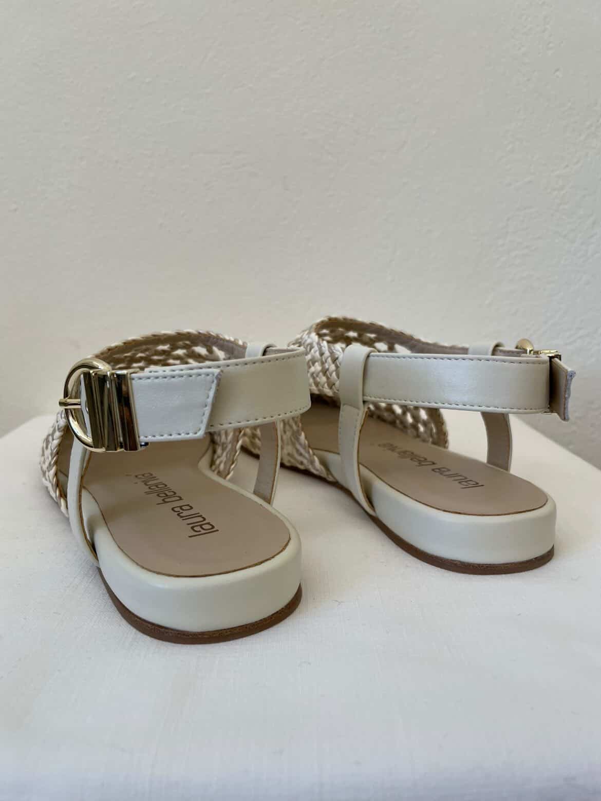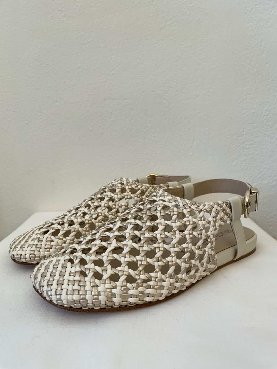 Sandale mit Riemenverschluss aus geflochtenem Leder, angenehm leicht.