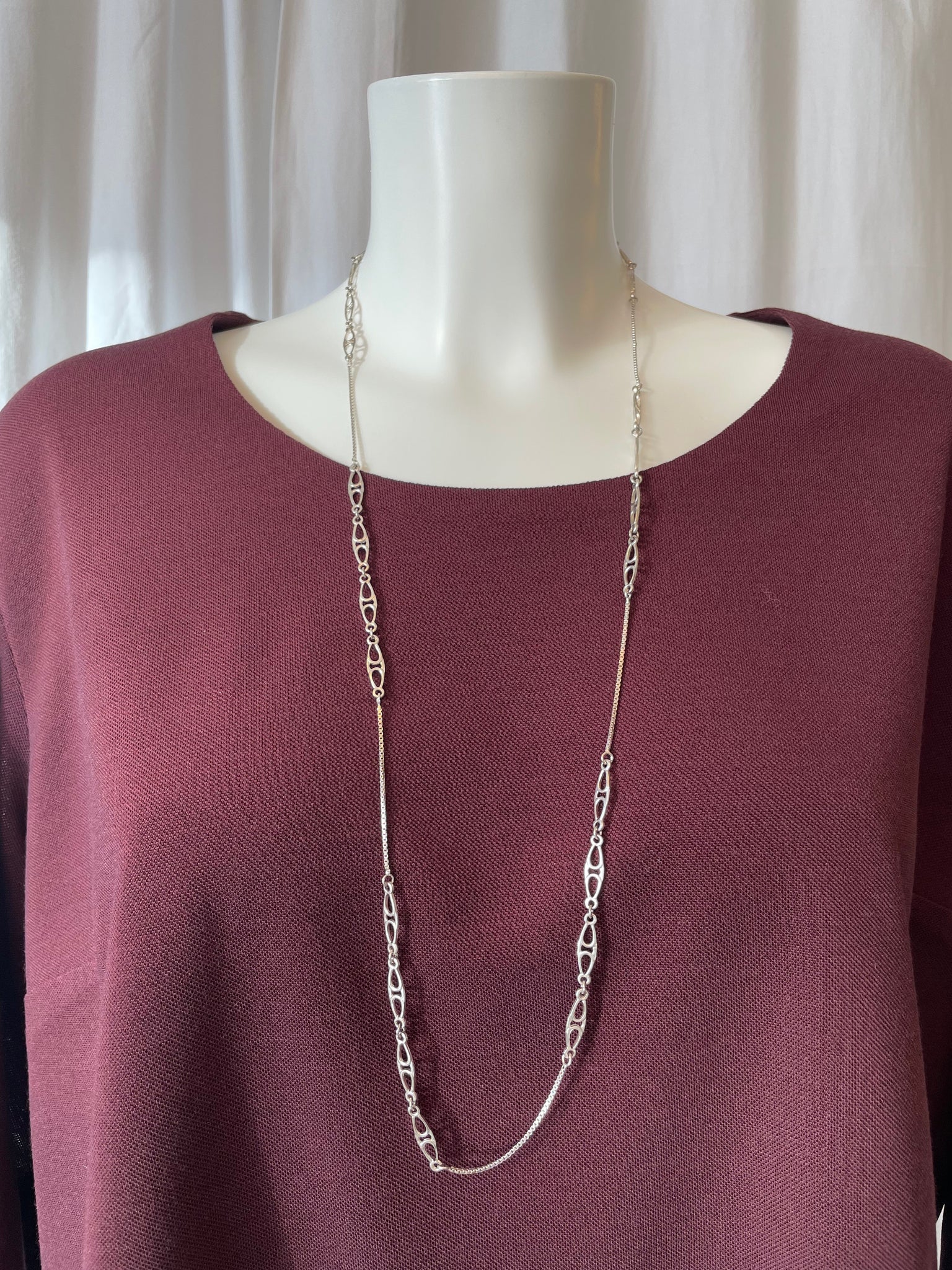 Halskette, fein gearbeitet. Länge getragen ca. 38 cm. Mit Karabiner Verschluss.