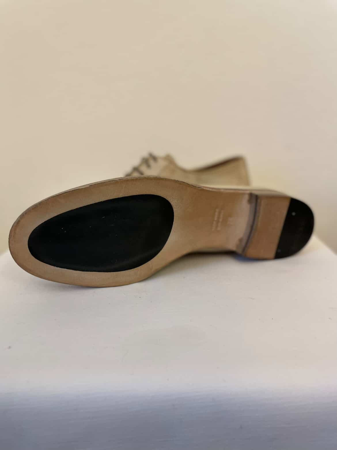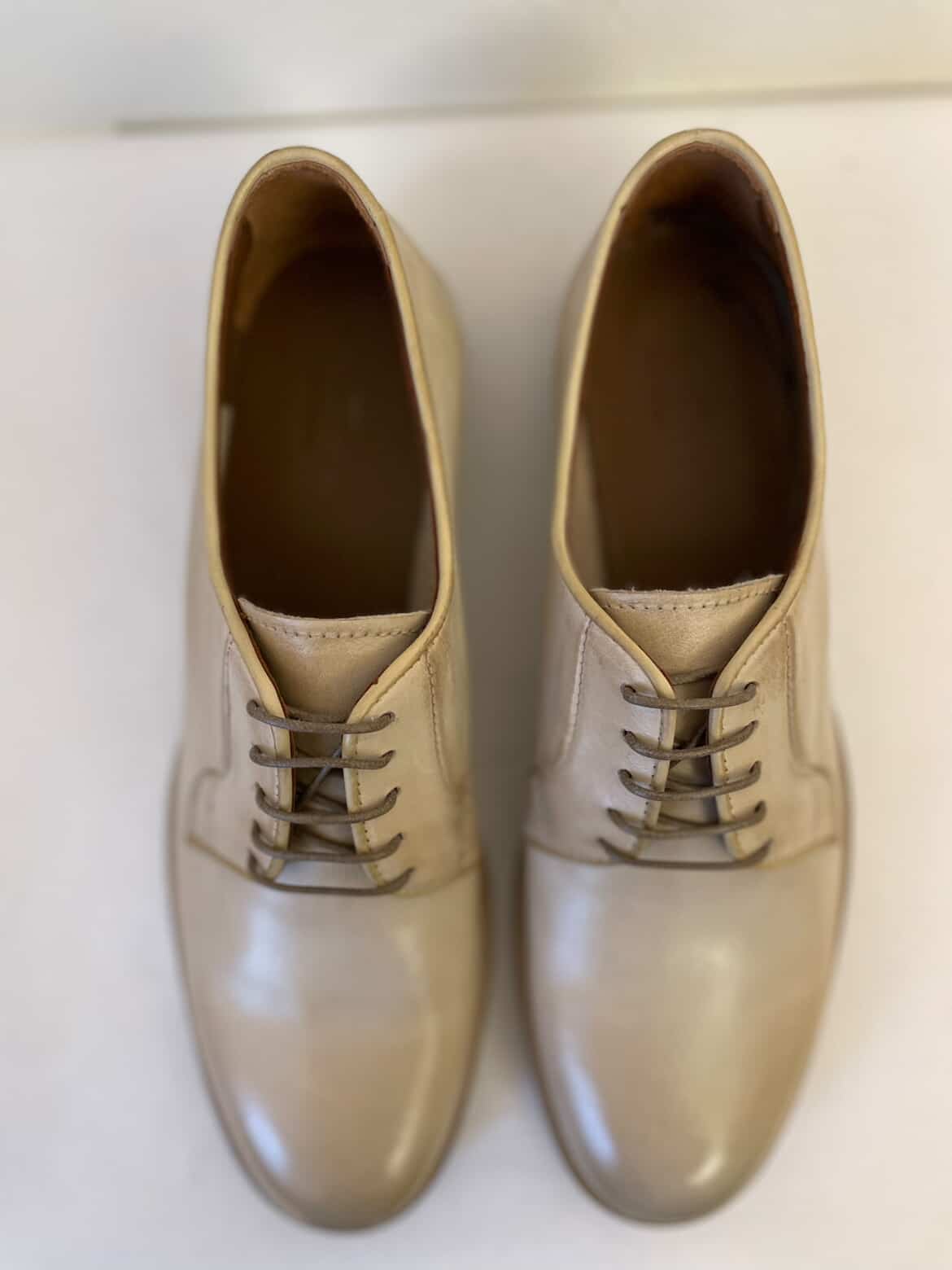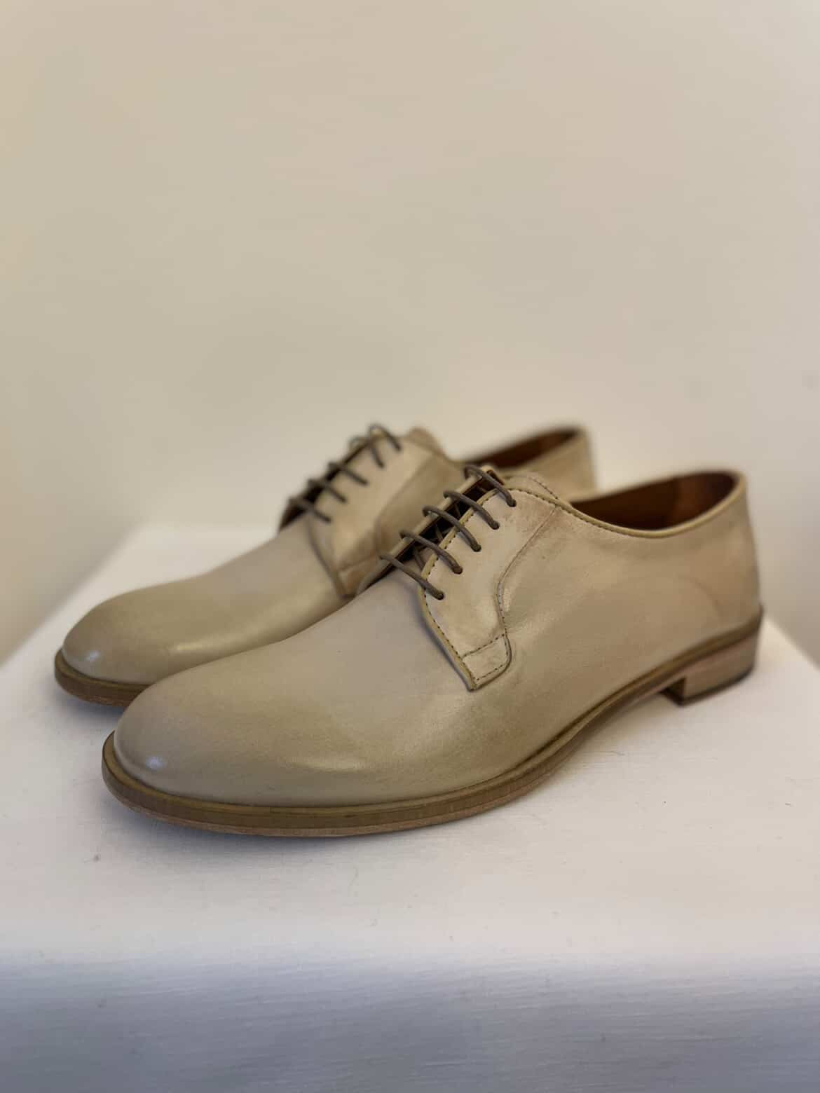 Schmal geschnittener Damen-Schnürer aus Büffelleder und dünner Ledersohle mit Gummi.